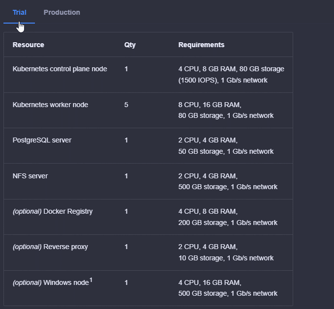 В явном виде указаны варианты развертывания - пробное и производственное