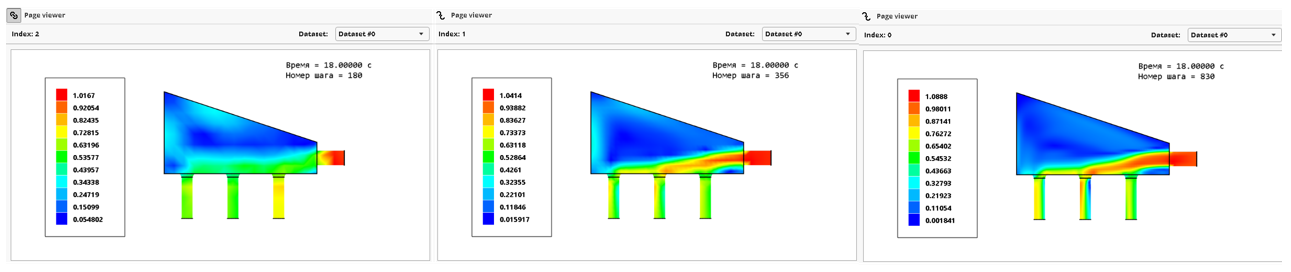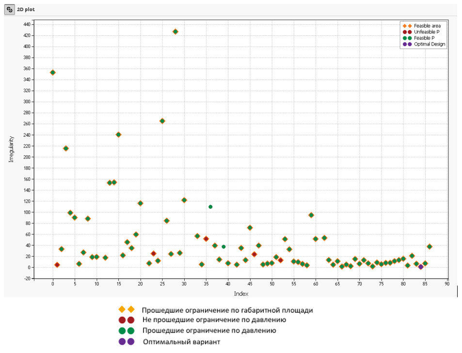 Таким образом, рассматриваемая оптимизационная задача сводится к нахождению геометрических характеристик коллектора: длины, высоты, угла между сторонами, которые обеспечат наиболее равномерный расход воздуха между тремя выходными сечениями при ограничении по максимальному перепаду давления и по габаритным размерам коллектора.
