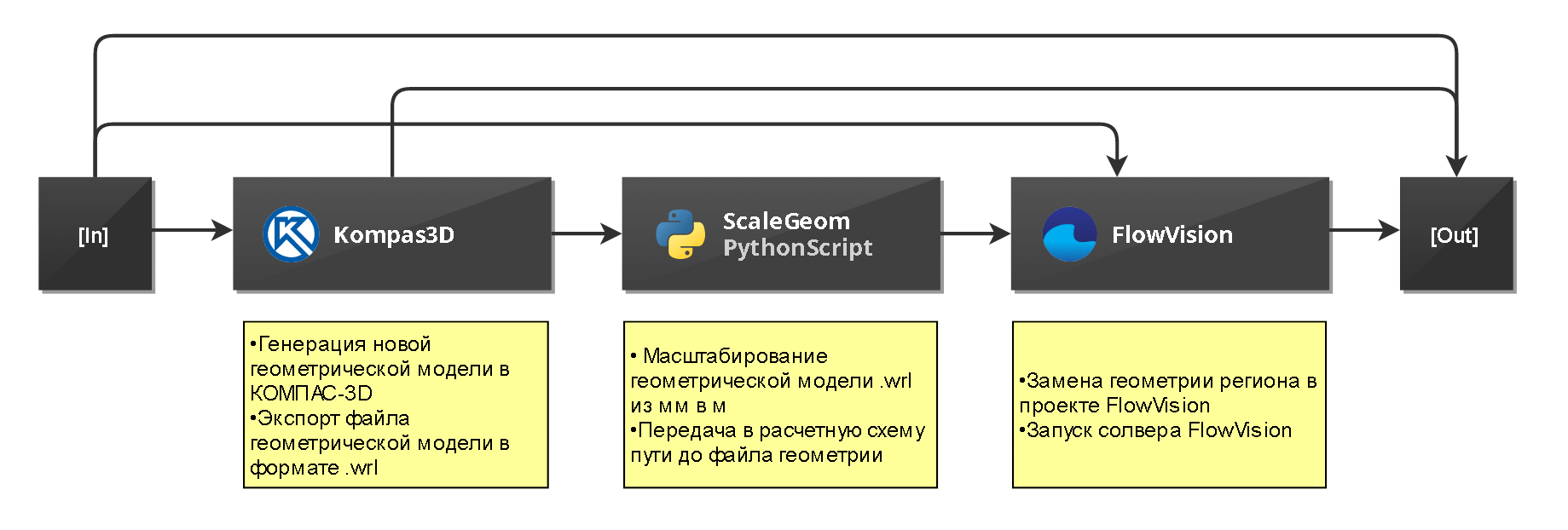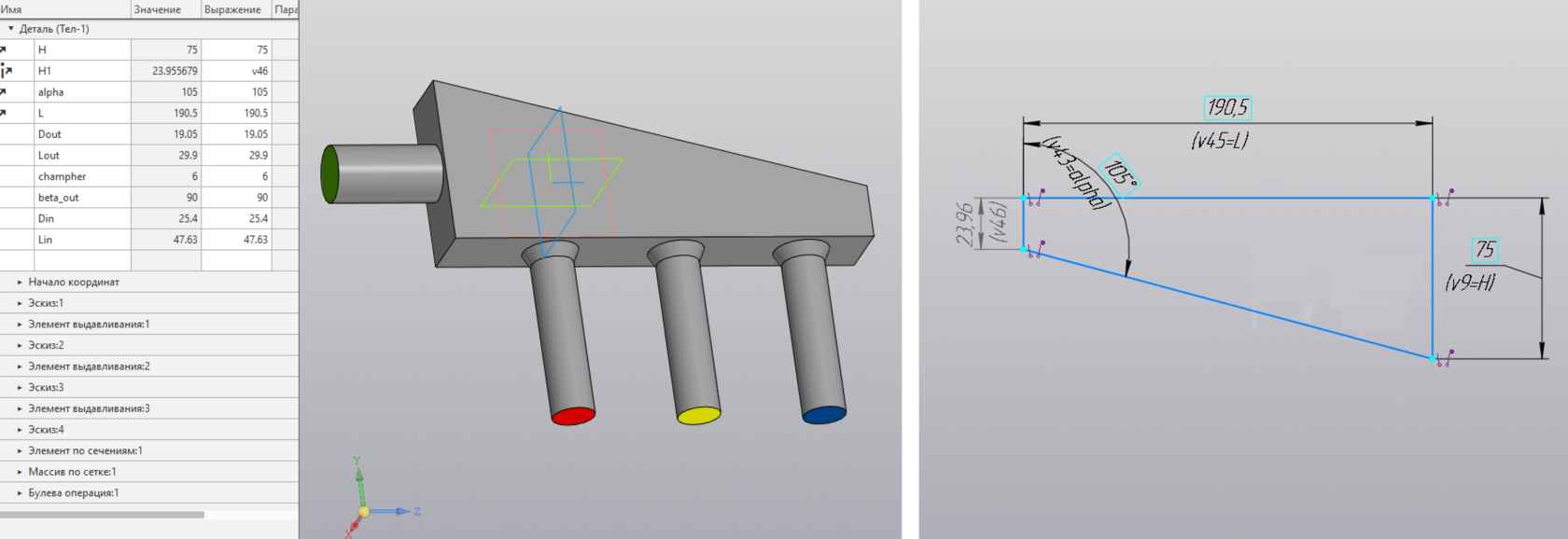 - Геометрическая модель должна быть параметризована в CAD (в данном случае в КОМПАС-3D), должна перестраиваться при получении новых значений управляющих параметров.