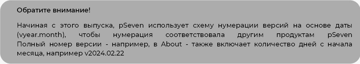 pSeven v2024.02 также включает другие исправления. Полный перечень приведен в списке изменений. Вы также можете связаться с нами для получения дополнительной информации